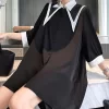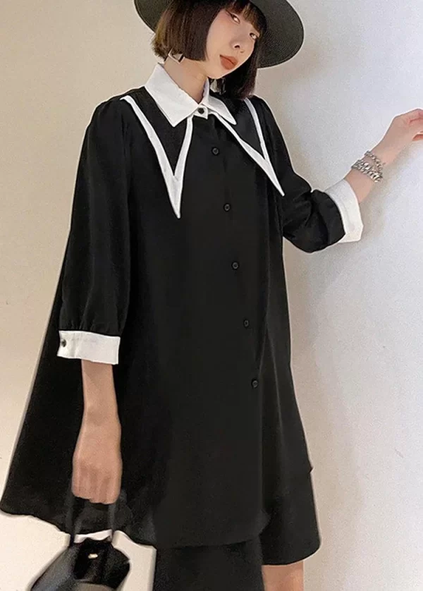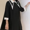 Bohemian Black Patchwork Cotton Button Summer Robe Dresses
