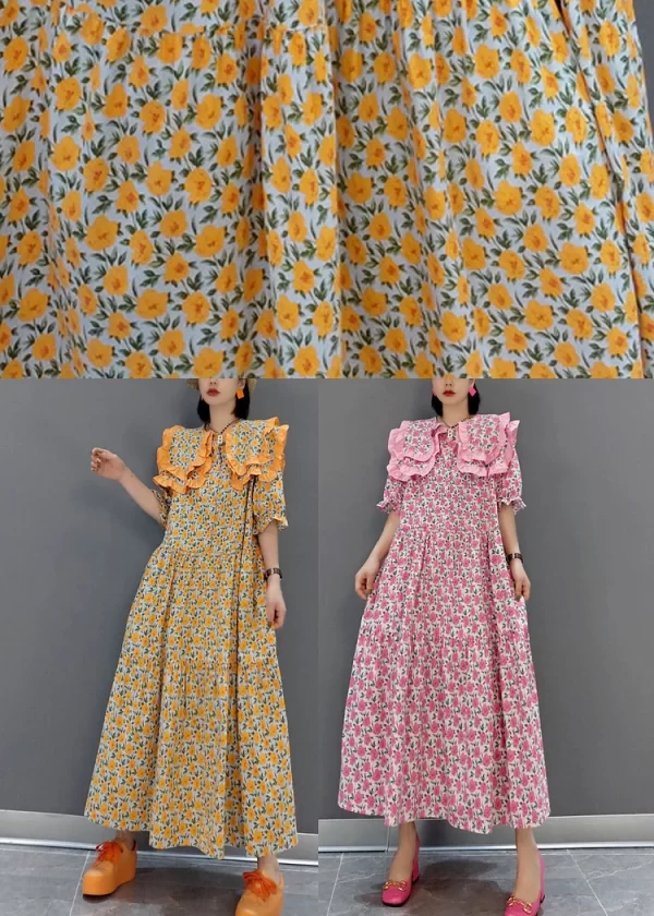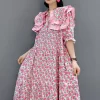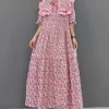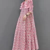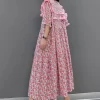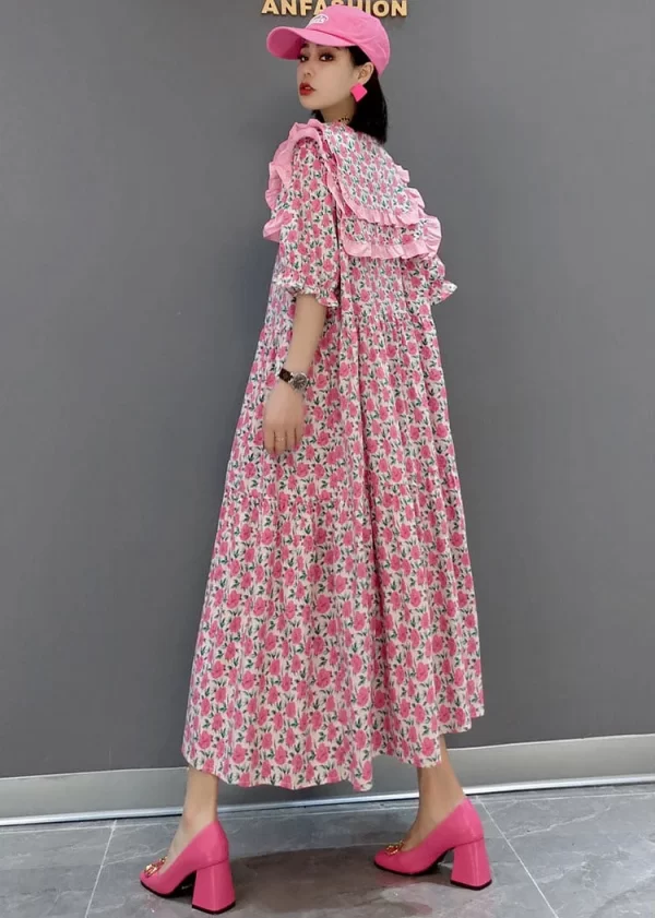 Pink Print Patchwork Cotton Maxi Dresses Half Sleeve
