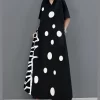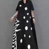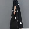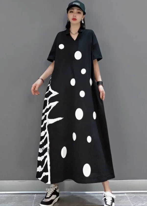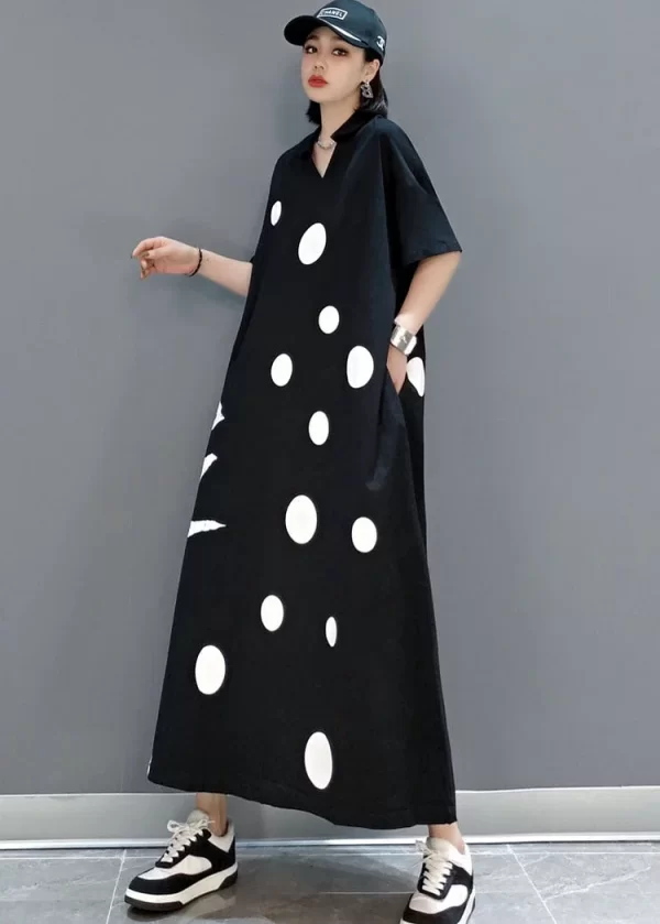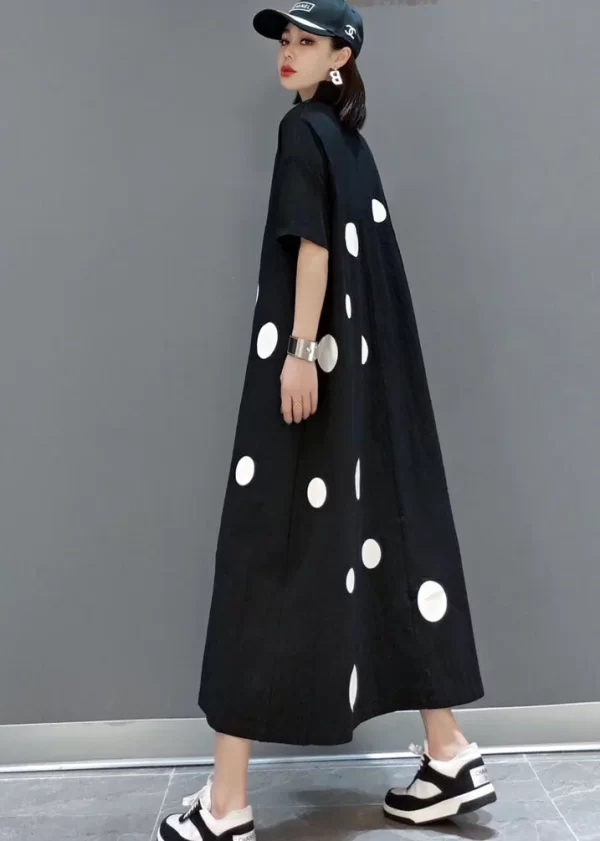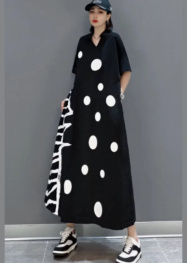 Plus Size Black V Neck Dot A line Dress Half Sleeve